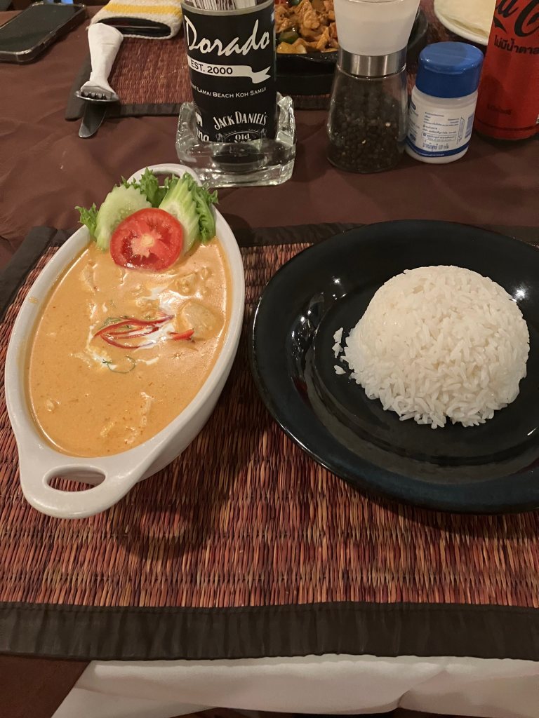 It does also usually includes peanut so anyone who is allergic, be sure to double check the ingredients before eating! The curry is usually rich in flavour and spices with a sweet taste.